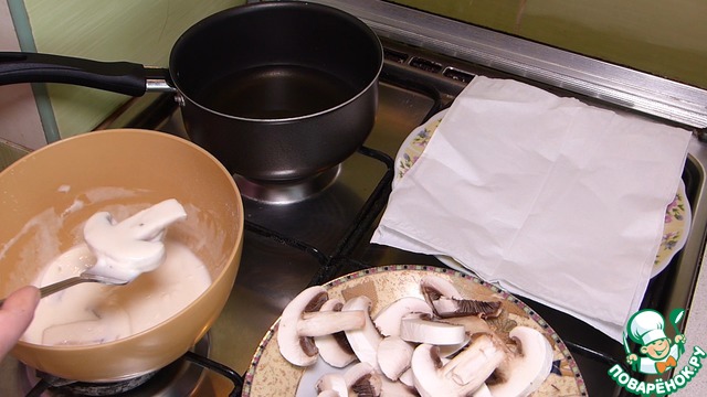 Рецепт «Шампиньоны в панировке и сметанный соус»: