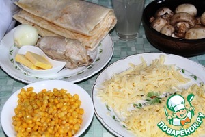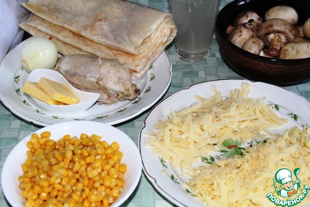 Я как-то готовила ачму из лаваша, а тут решила пойти дальше и приготовила пирог-запеканку, готовила летом, когда даже страстные любители овощей с грядки приуныли (дождь зарядил на неделю), захотелось чего-нибудь посытнее. Хотя конечно овощи присутствуют и в этом блюде, куда же без них любимых. Особенно удачно получается эта запеканка после праздников, когда в холодильнике остаются и неполная баночка кукурузы, и грибы, и часть индейки или курицы (как у меня).