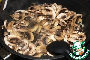 В большой сковороде на умеренно-сильном огне разогрейте оливковое масло, затем присоедините к нему сливочное и обжарьте грибы около 10 минут.