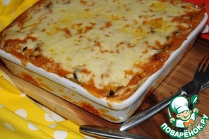 На фотографии продукты, многие уже подготовлены. Количество продуктов приведено на три слоя запеканки, у меня в форме 22см на 22 см только два, остальное я использовала позже.