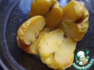 Яблоки разрезать пополам, убрать семена (я не убрала сразу и потом с горячих было сложнее) и запечь в микро до мягкости. У меня ушло 5 мин.