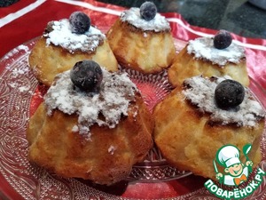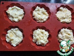 Выложить тесто в формочки. У меня силиконовые, я их сбрызнула водой, если формочки другие, смазать маслом.