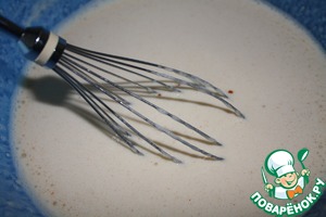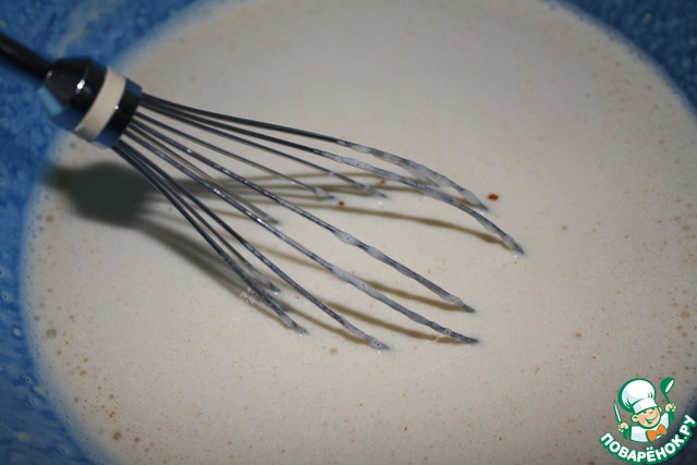 Постепенно добавляя все молоко получаем тесто чуть гуще чем на блины и чуть пожиже чем на оладьи. Даем постоять 30 минут.