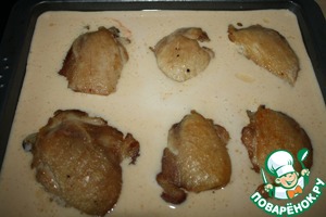 В оригинале рецепта можно брать любые части курицы, но мне нравится с бедрышками из верхней части т. к. костей меньше. -