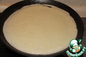 Сковороду слегка смазать маслом, налить тесто. Печь на среднем огне, с двух сторон. Перед каждым блином сковороду слегка смазывать маслом (растительным).