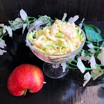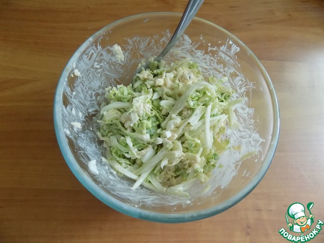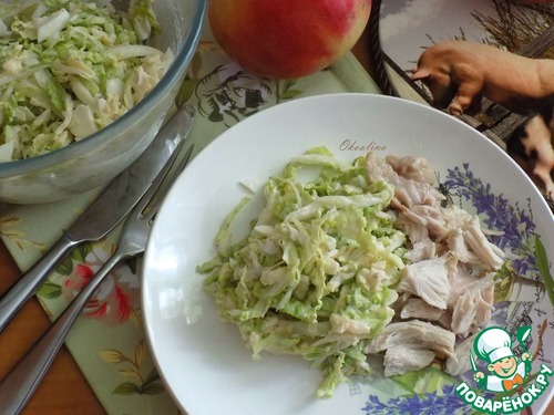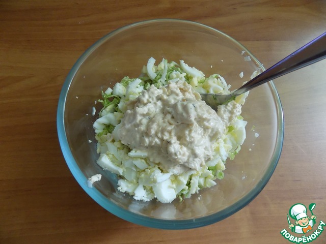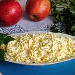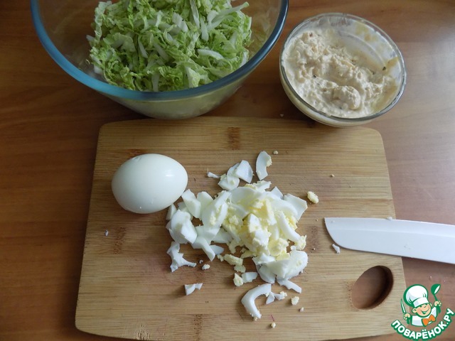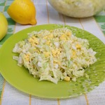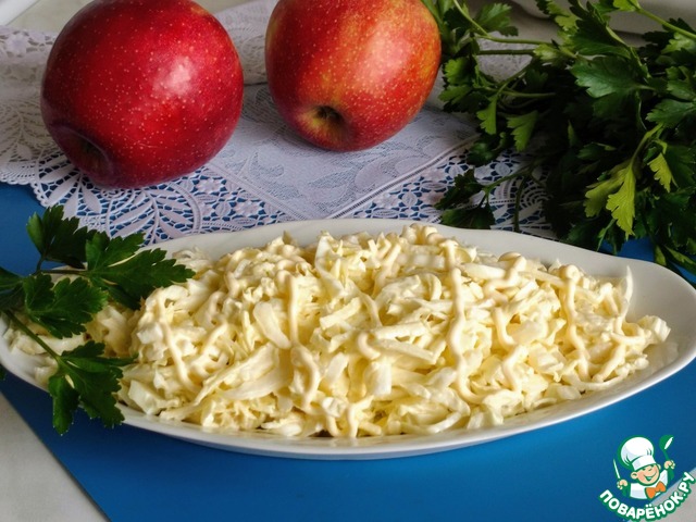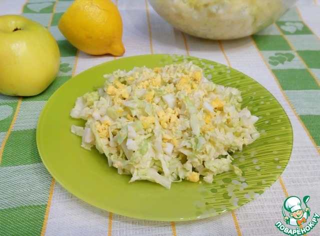 Иногда в заправку я не тру яблоко. Я его очень тонко нарезаю, поливаю лимонным соком и отправляю в салатник к капусте и яйцам. Заправляю майонезом, солью и перцем. Тоже очень вкусно для меня. -