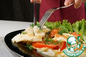 Ну и ву-аля, выкладываем на тарелочку рыбку, рядом картошечка и наши чудесные овощи! Приятного аппетита!