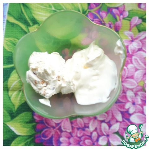 Готовим заправку. Смешиваем сметану и творожный сыр.