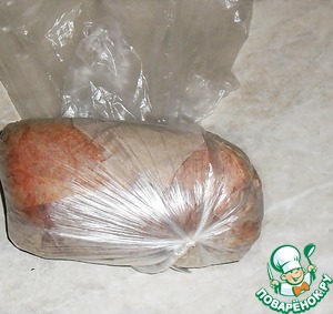 Теперь упаковать в полиэтиленовый пакет, плотно в несколько слоёв. Убрать в холодильник на двое суток. Не забывайте несколько раз в сутки переворачивать этот сверток, даже слегка его обминайте, чтобы мясо равномерно промариновалось.