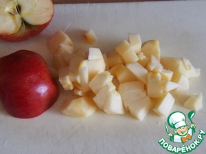 В принципе, количество ингредиентов можете менять по вкусу. Итак, яблоки очистить и нарезать небольшими кусочками. Яблоки лучше брать не кислые, а послаще.