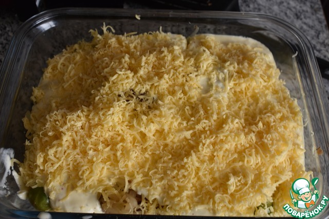 • Посыпать оставшимся сыром верх и отправить в духовку, разогретую на 180 градусов на 40 минут.