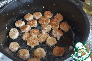 Обжарить фрикадельки на раскаленной сковороде, смазанной растительным маслом, с 2-х сторон.