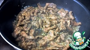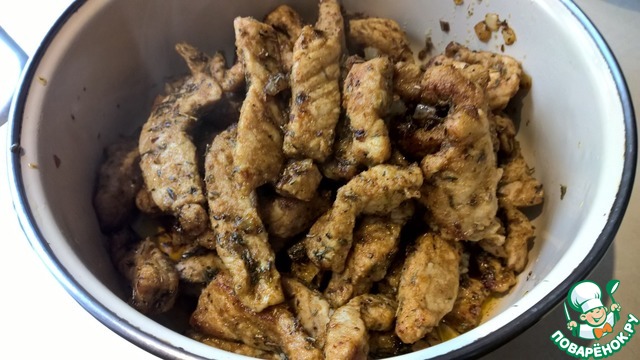 Когда мясо готово, выкладываем его в миску - чтобы прекратить процесс жарки и не пересушить мясо.
