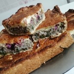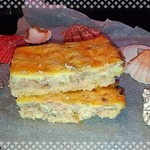 Немного другое тесто, и начинка без риса, но идея та же: сардина или тюна с обжаренным луком и заливка.