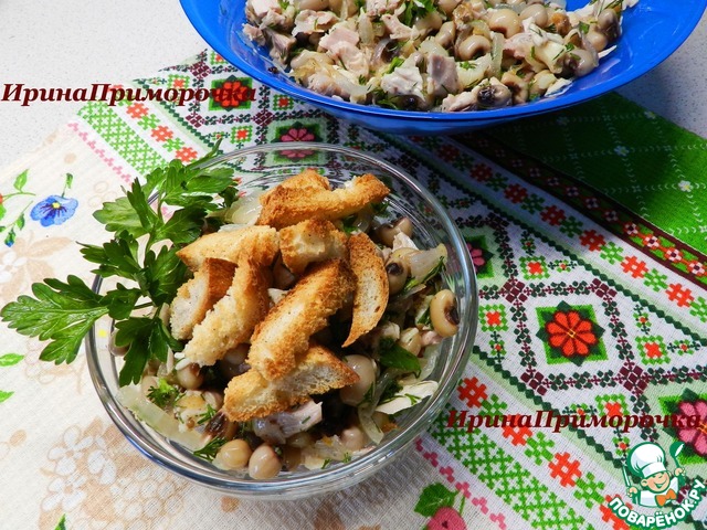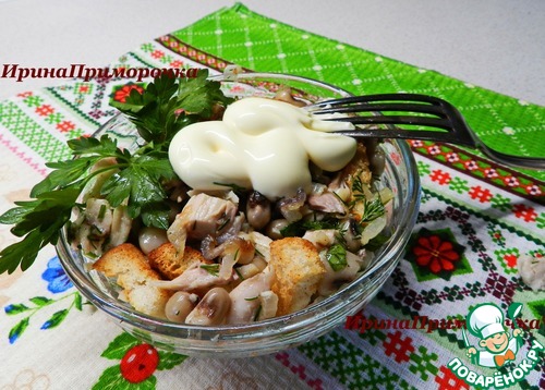 Рецепт «Салат фасолевый с курицей и сухариками»: