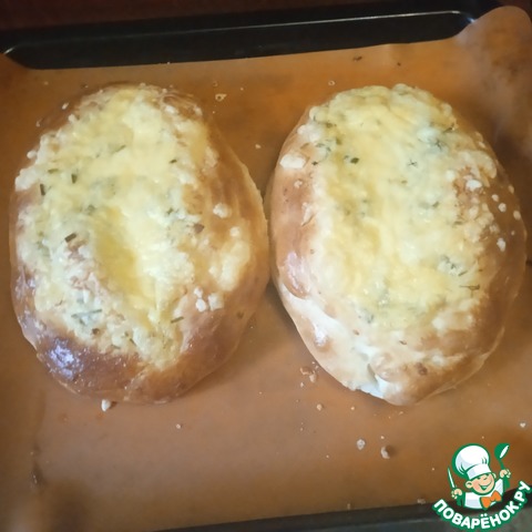 Рецепт «Багет с сыром, чесноком и зеленью»:
