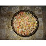 3. Сливаем с горошка сок и выкладываем к остальным ингредиентам.