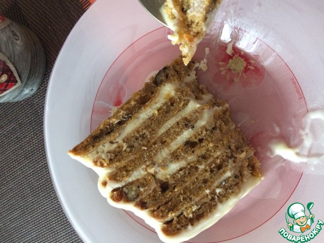 Очень вкусный торт, с которым мой младший сын "играл" в забаву "Угадай, из чего он сделан?"! Все, кто попробовал, отмечали его замечательный вкус, но мало кто угадал основной компонент. Мой практический комментарий - регулируйте муку в зависимости от ее качества. Я положила по рецепту, но, на мой вкус и взгляд, оказалось многовато. Тесто должно быть меньшей плотности, чем у меня на фото (легко размазываться). Рецепт от Валерии (Едим Дома)
