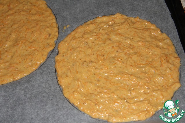 Выпекать в заранее разогретой до 200 градусов духовке до румяности (примерно 10 мин. каждый корж). -