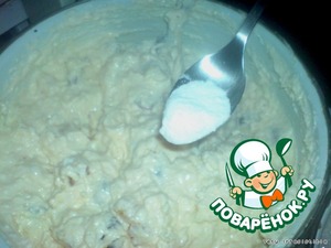 • Выкладываем в нашу смесь цукаты, хорошо перемешиваем и добавляем половину чайной ложки гашеной соды.