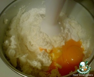 Хорошо растираем творог с желтками и сахарной пудрой. Я взяла 2 столовые ложки ванильной пудры и мне показалось, что было очень сладко, так как много сахара в ананасах и клубнике. Так что, если не любите приторное, возьмите меньше.