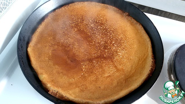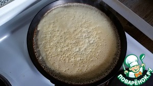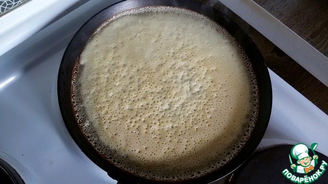 Сильно раскалить сковороду, наливать немного теста, равномерно его распределять.