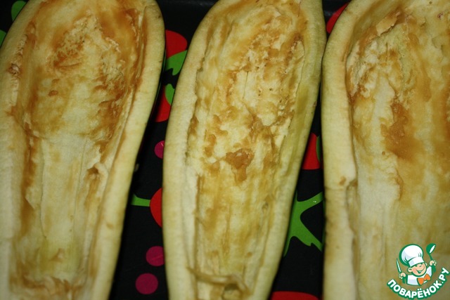 Из баклажан удалить мякоть и нарезать ее на кубики.
