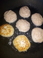 Разогреть сковороду с растительным маслом. Мокрыми руками формировать котлеты и обжаривать на огне выше среднего с двух сторон, буквально по 2 минуты до легкой золотистой корочки.