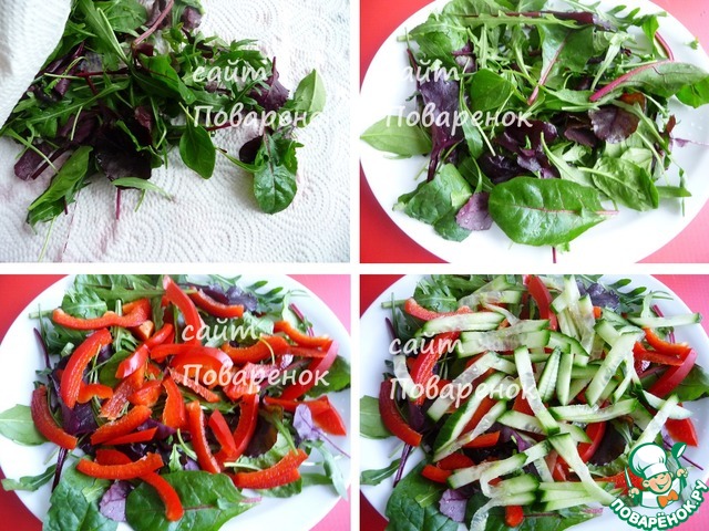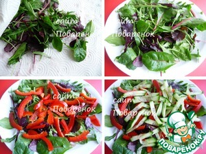 Вымыть и высушить рукколу бумажным полотенцем.