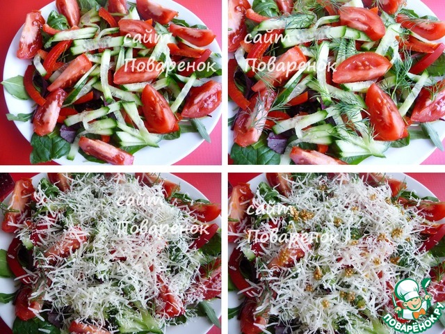 Заправить салат оливковым маслом.