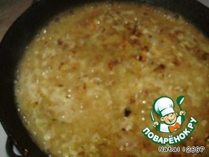 • Добавить специи, соль, обжаренный лук, бульон и тушить до выпаривания жидкости.