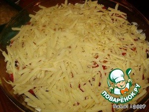 • И последний слой - тертый сыр. Запечь в духовке 200 градусов 40 минут.