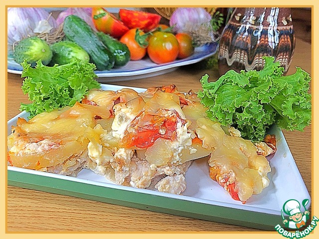 Это блюдо по-царски вкусное. И на семейный обед и на праздничный стол. Мясо нежнейшее, а гарнир это тайна для наших вкусовых рецептеров)) Можно подать с легким салатом из свежих овощей.