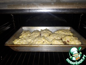 Выложить аппетитную заготовку на каждый кусочек мяса, если остается лишняя можно и между кусочками, и поставить в разогретую до 180 градусов духовку. Запекать примерно 25 минут.