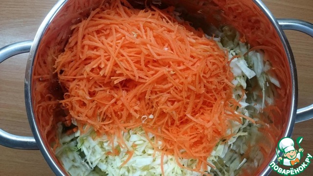 Морковь почистить и измельчить на терке. Добавить к капусте.