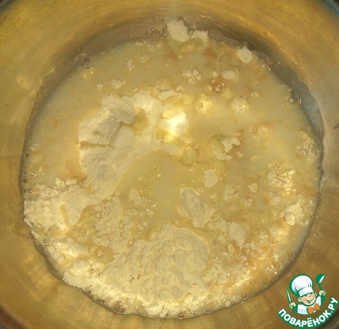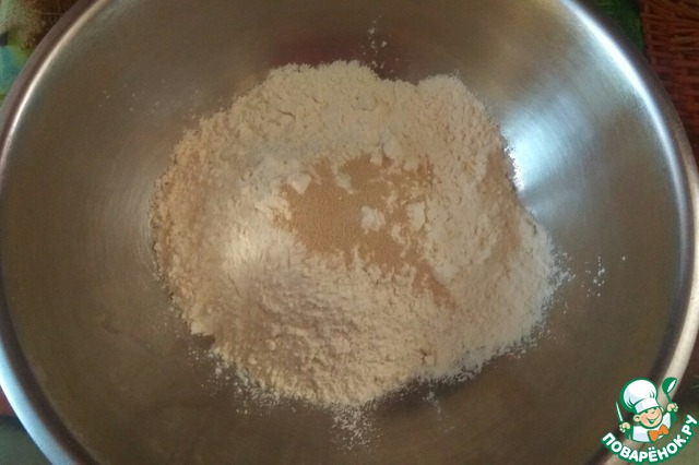Замесить тесто. Поставить в тёплое место для подъёма на 1,5 часа.