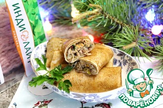 [+4]Оказались мои блины толстоваты для такого способа. Не очень аккуратно получилось.