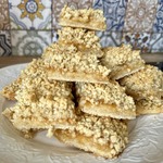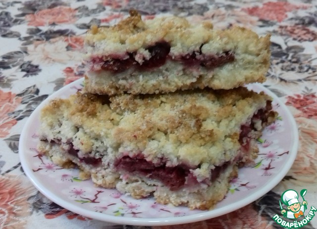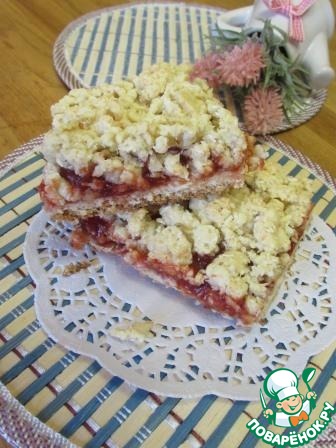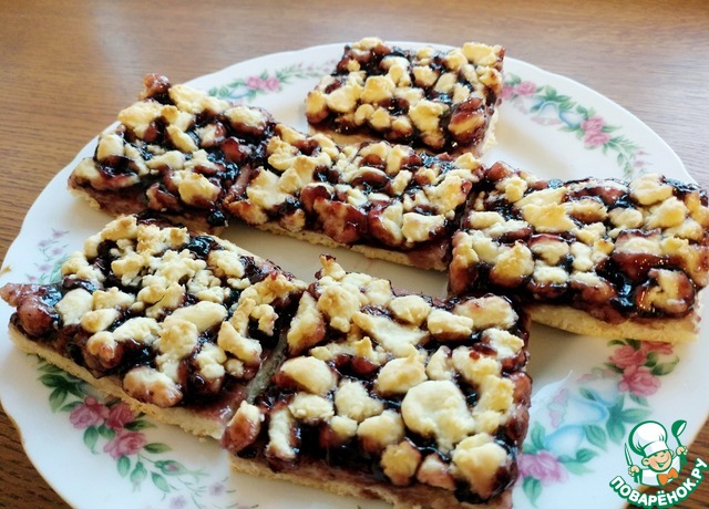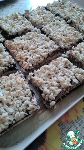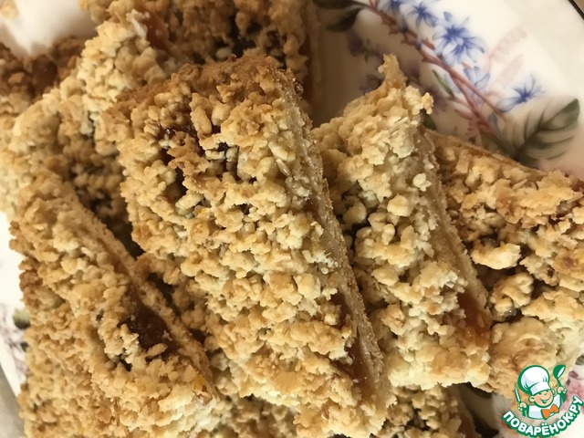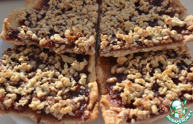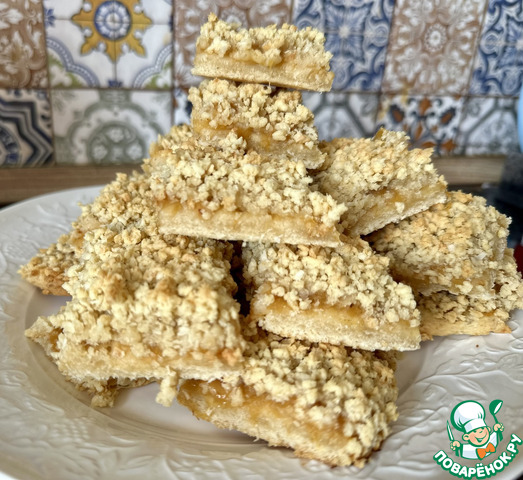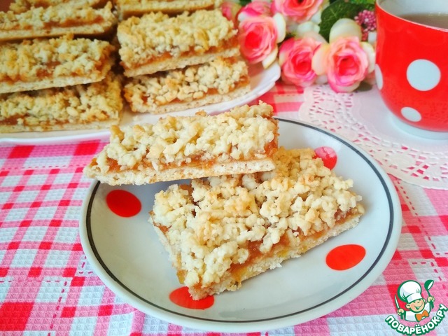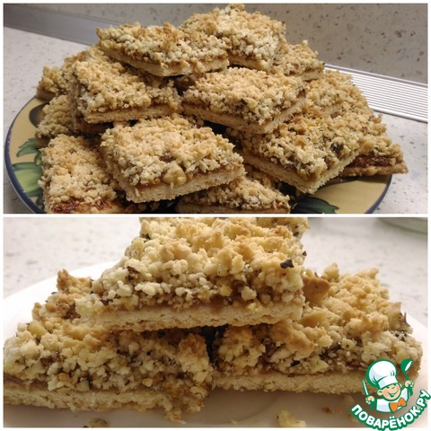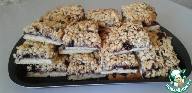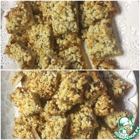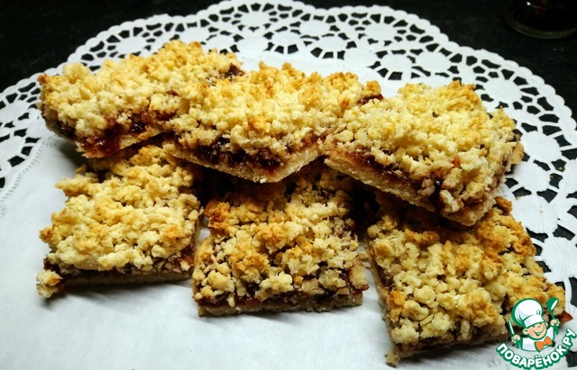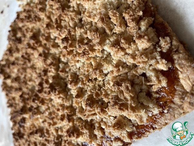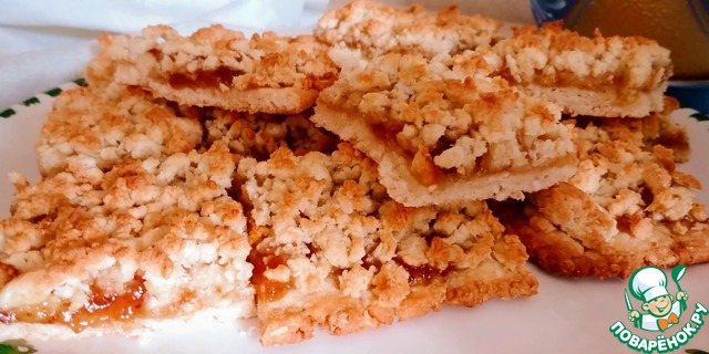 Готовое печенье вынуть из духовки и горячим нарезать на квадратики/прямоугол ьники. Дать печенью остыть и подавать к чаю!