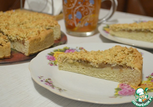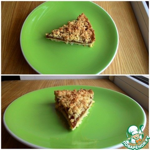 Сверху по всей поверхности распределить густое повидло, джем или, как в моем случае, густое яблочное варенье с дольками.