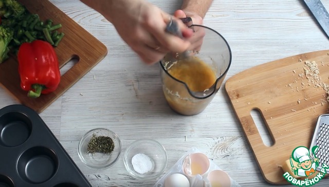 Формы для кексов смазываем растительным маслом и заполняем овощами, примерно на половину.