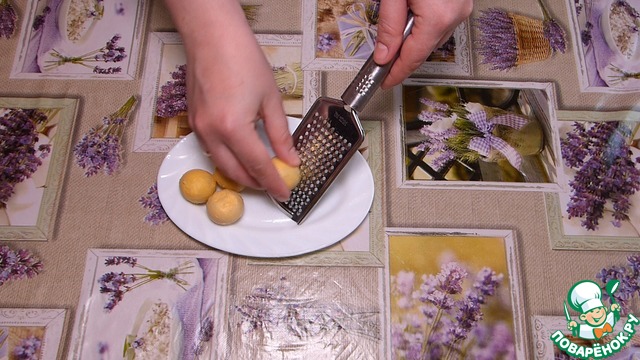 На мелкую терку поочередно натираем сыр, белки и желтки.
