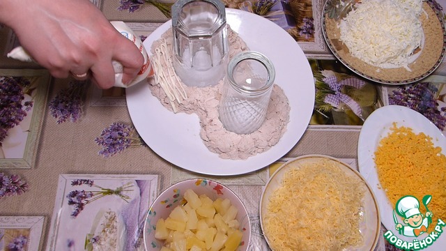Выкладываем одним слоем ананасы.