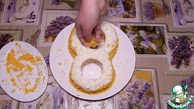 Внутри "8" также украшаем желтками. -