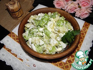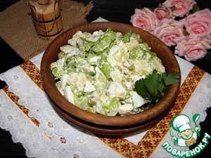 Лук измельчить и тоже добавить в салат (выбирайте без горчинки)