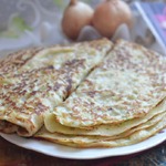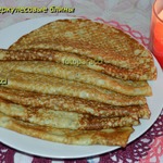 Снимаем блины на тарелку и каждый промазываем щедро сливочным маслом. Блины складываем в тарелку "лицом" вверх! Получилось 6 штук блинов D-24 см.