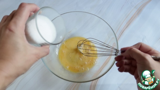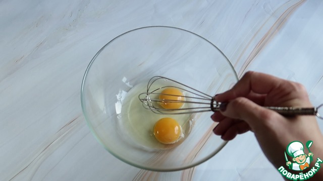 Разбить в миску 2 яйца и перемешать их венчиком.