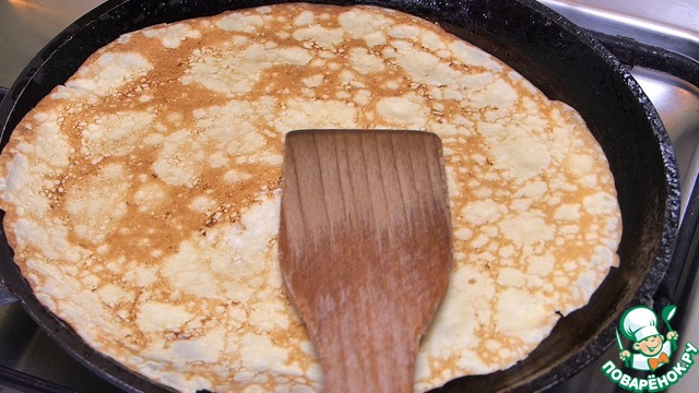 Обжариваю вторую сторону блина на умеренном огне 30-40 секунд.