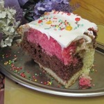 Ко второй части теста добавить клубничный, розовый пудинг и перемешать. Если у вас нет клубничного пудинга, то заменить на ванильный пудинг и добавить сок свеклы, чтобы добиться розового цвета.