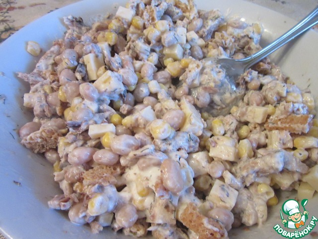 Салат сухарный со шпротами