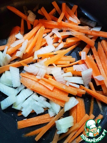 В кастрюле с толстым дном на растительном масле пассеровать лук и морковь.